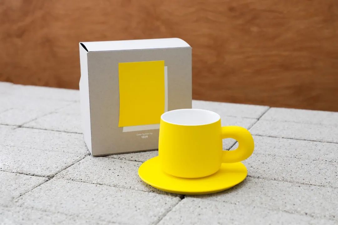 丰富多彩的杯子则是 16开的产品灵魂所在,因此在外盒上,品牌设计了代表每一款杯子的色卡纸,并且在色卡纸的背面印上了 16开对这款颜色的解读。