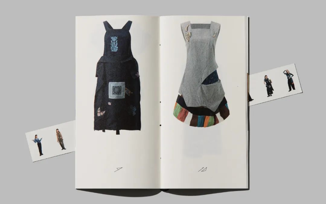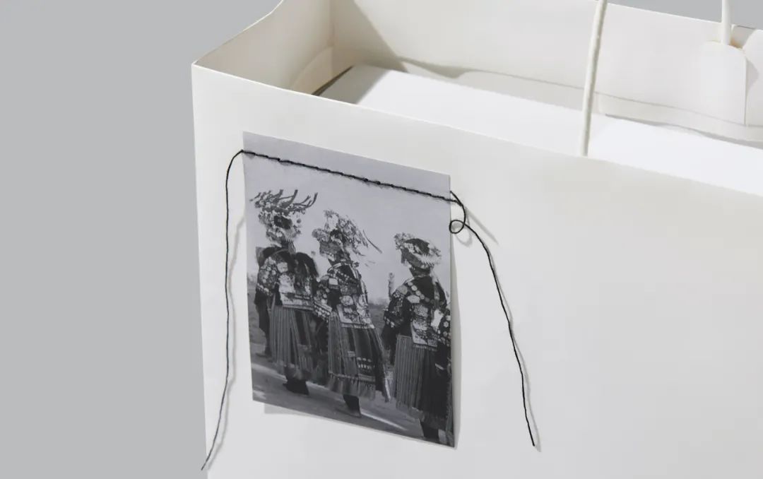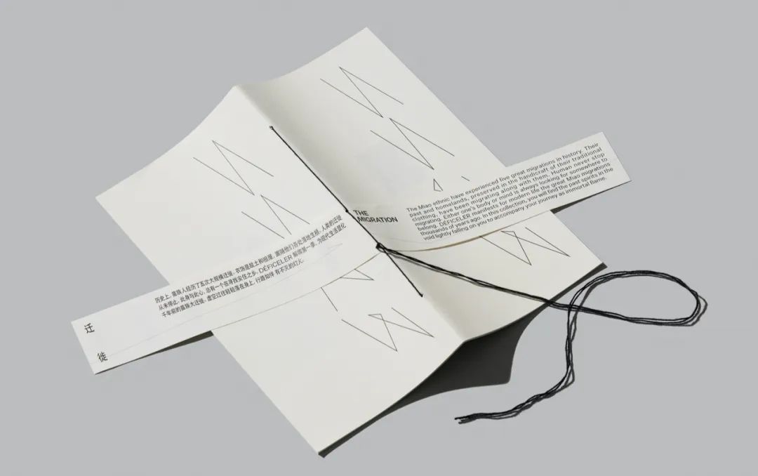 其品牌形象设计延续西南少数民族文化特色和传统,例如,传统的苗族形象是直接手工缝制在包上,自然垂落。因此在 Lookbook 的设计上,解开和打结的概念是通过使用黑线作为装订来形象化,同时故意保留了很长的装订线,可缠绕在书上。