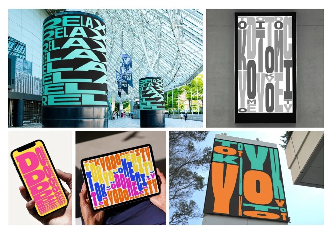设计方受邀为东京巨蛋城设计全新的形象,包括在内的各种设施。设计方使用了一种具有广泛可变范围的原创可变字体,并使用内部开发的软件将字体的可变性发挥到极致,从而实现超越模拟和数字界限的一致视觉设计,并可适用于任何比例或形状。