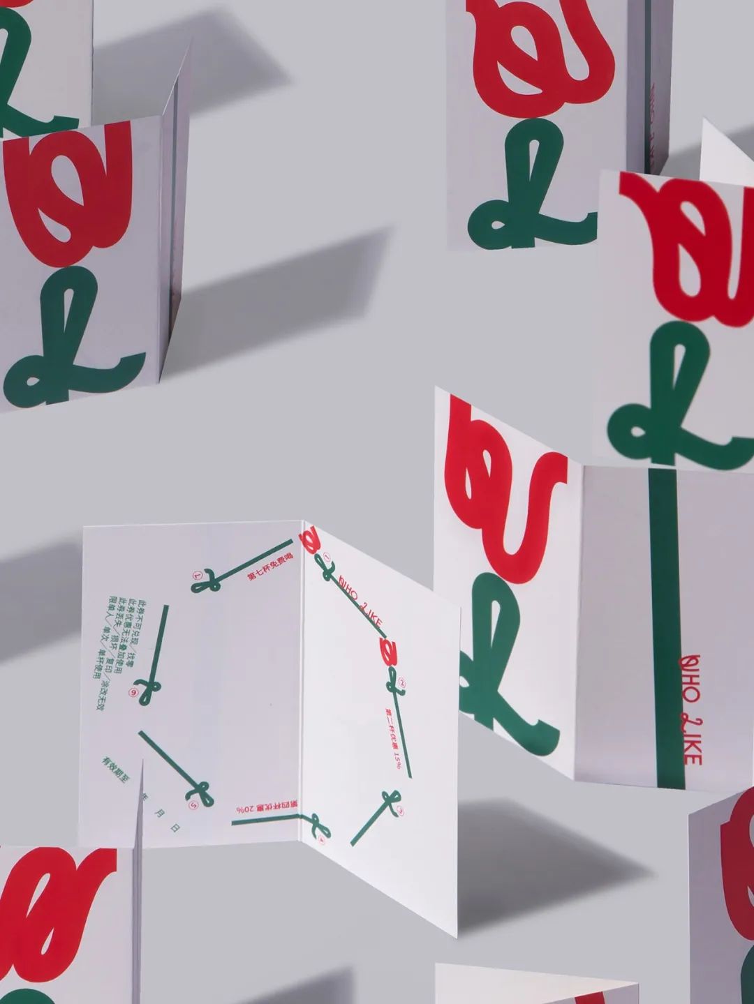 在辅助图形上,设计以首字母 W 为花朵,L 为根茎组合成「一支花」,并以 12 个不同形态的「W」(花)自由地缠绕在不同应用上,形成丰富的延展变化,传递 WHO LIKE 随性、浪漫的品牌气质,同时也表达对顾客的美好祝愿。