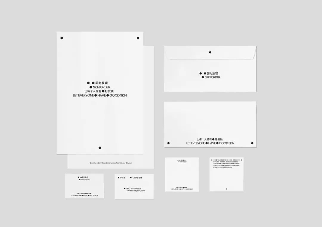 图形符号中的三个圆点不断跳跃,并嵌入文字空间,文字编排也随之发生变化,使点状图形呈现出像微观分子般不断变化进入皮肤表层的视觉感知,以体现集团公司在皮肤科领域的专注与深耕。