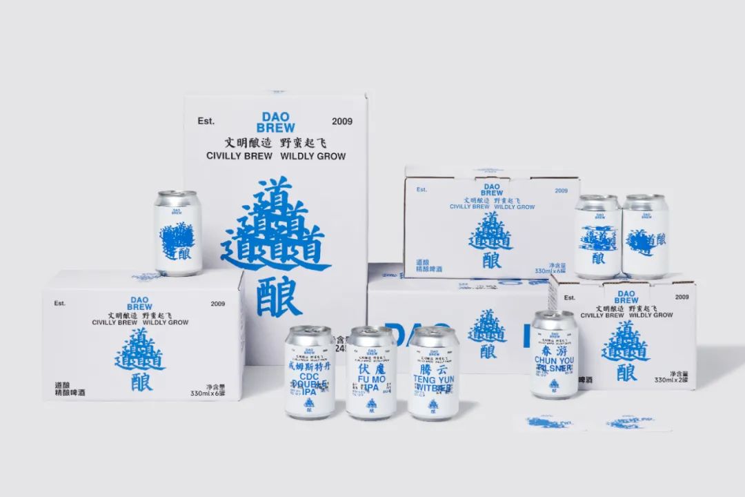 「道酿」是一家中国精酿啤酒品牌,2009 年创立于成都。道酿的新 VI 遵循着「文明酿造,野蛮起飞」的品牌理念,试图通过文字的方式沟通与想象。