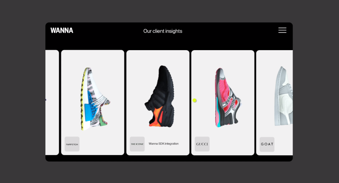 这公司是真的踩到时代红利了,Wanna 是一家领先的时尚科技公司,发明了用于试穿鞋类和配饰的超现实 AR 技术。就是在家可以试鞋,比直播更一步接近了消费者。这个品牌在疫情时期发展迅速,Gucci、Farfetch、Snapchat、Reebok等大牌都找他来合作。